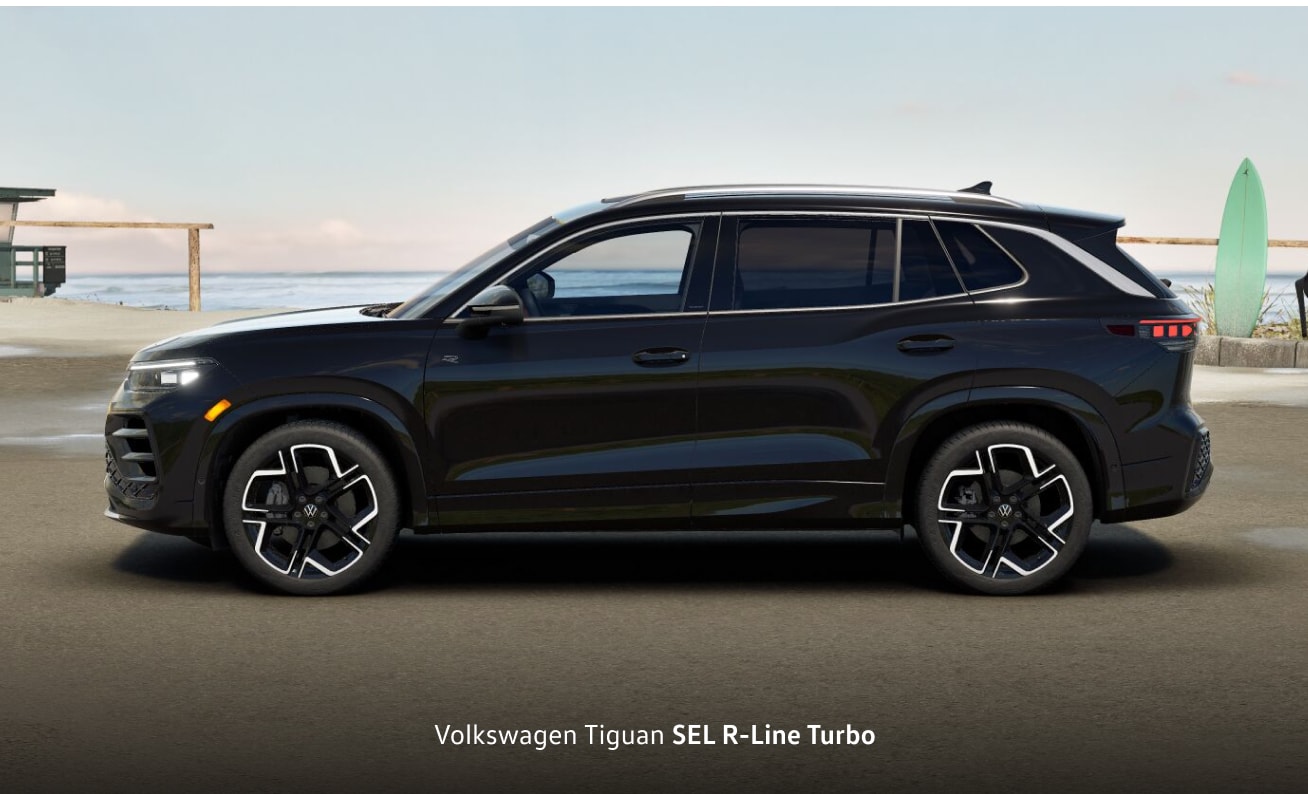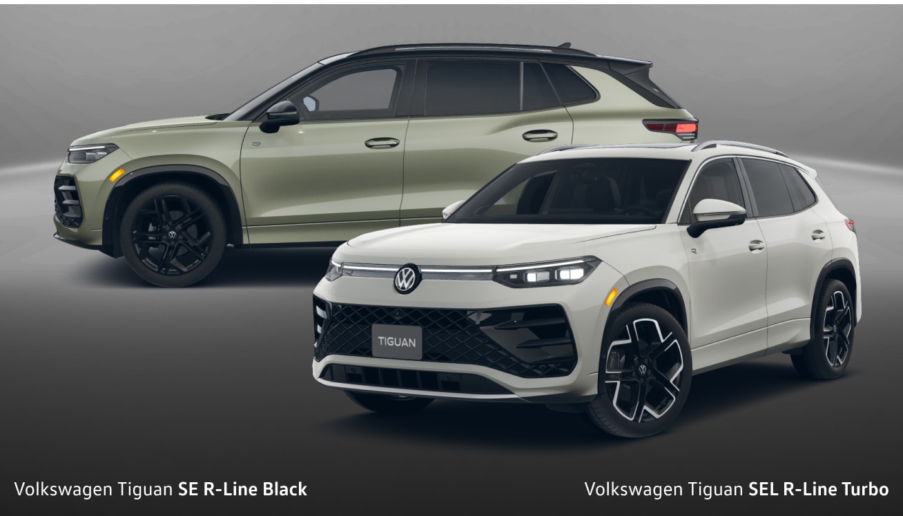 - Four VW Tiguan trims: S, SE, SE R-Line Black, SEL R-Line Turbo